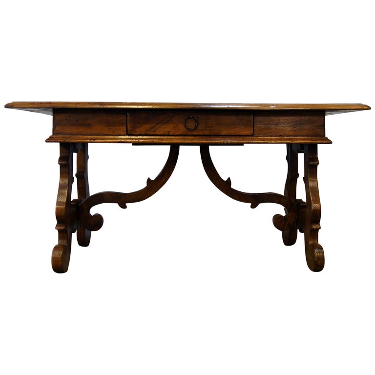 17th Century Style Italian Refectory Old Walnut Coffee Table With Single Drawer For Sale At 1stdibs