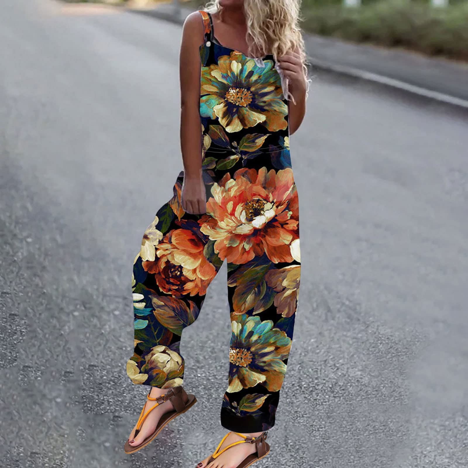 Elfindea Capri Pants For Women Fashion Summer Sweet Loose Casual Print Retro Strappy Jumpsuit Brown 3xl Walmart Com